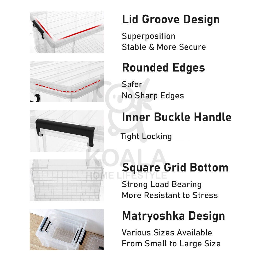 Koala Home Transparent Storage Box Organizer Stackable Container Waterproof 15L/40L/55L/80L/105L